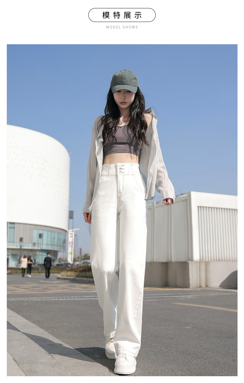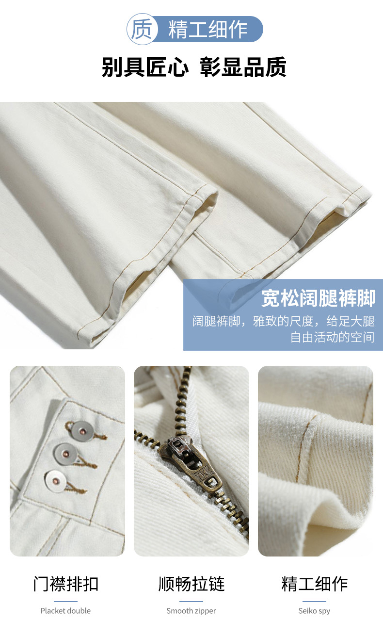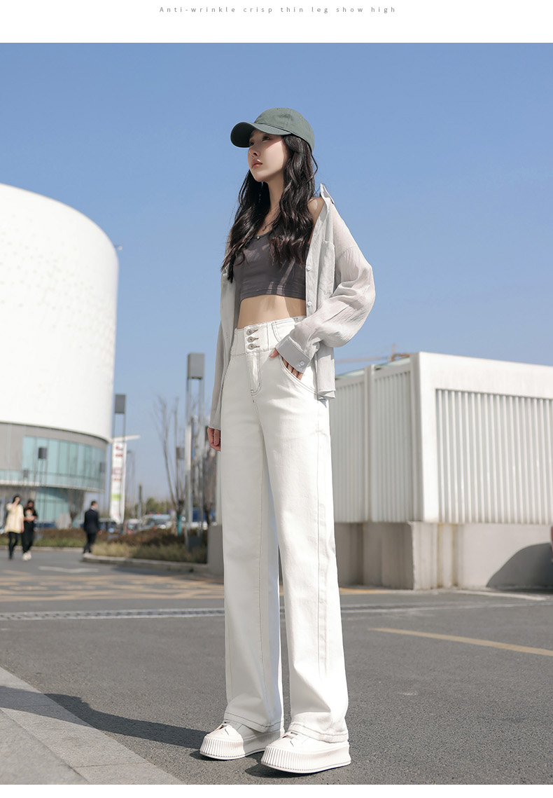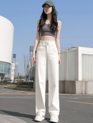 米白色高腰牛仔裤女宽松直筒2022年夏季薄款新款垂感柔软阔腿裤子