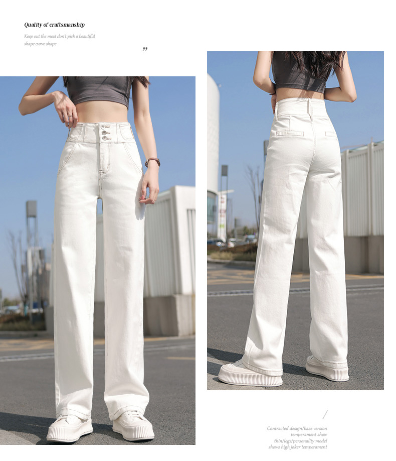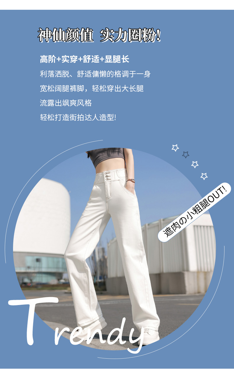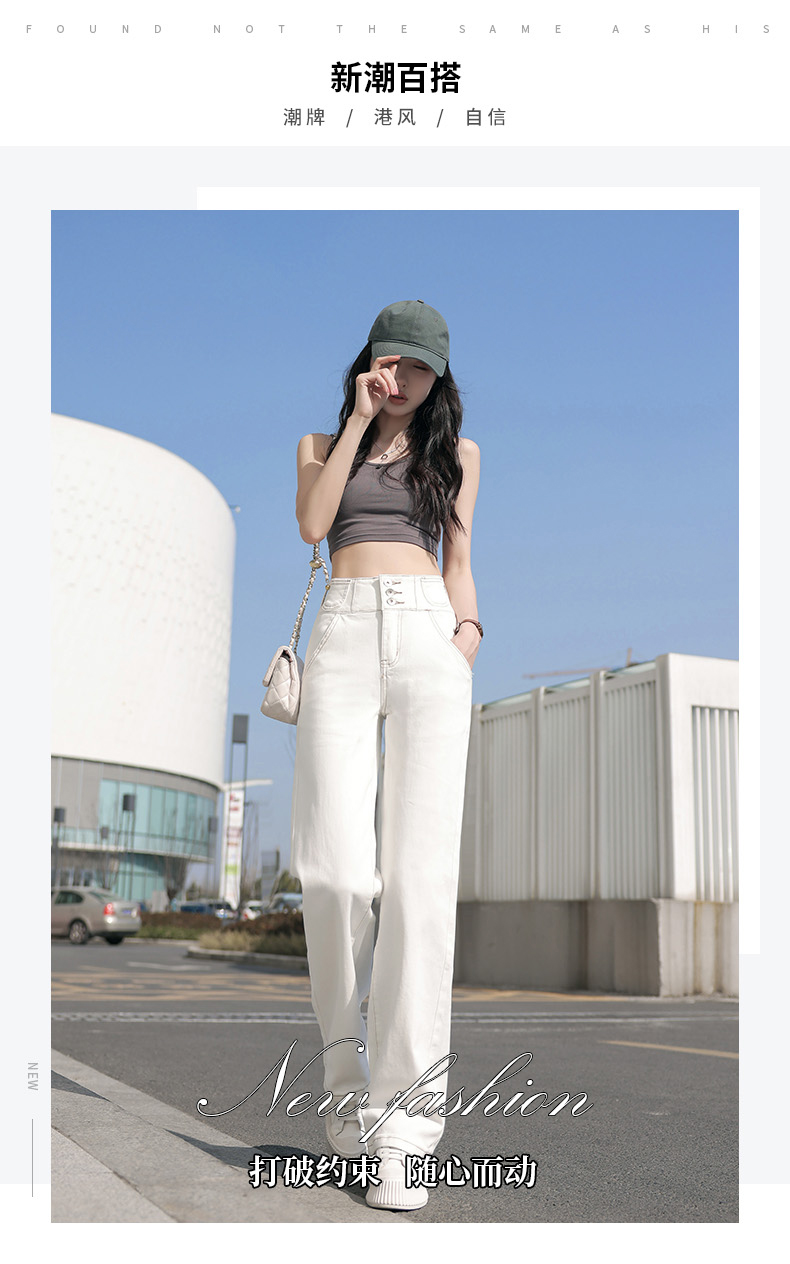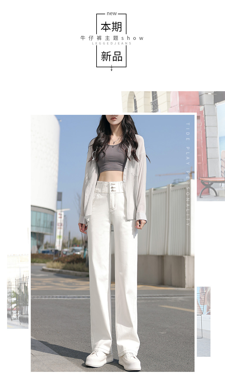 米白色高腰牛仔裤女宽松直筒2022年夏季薄款新款垂感柔软阔腿裤子