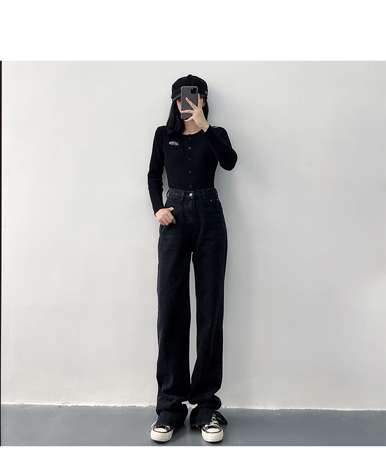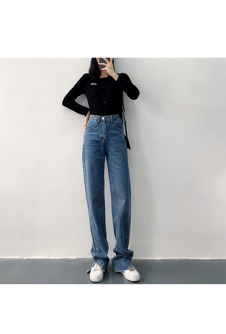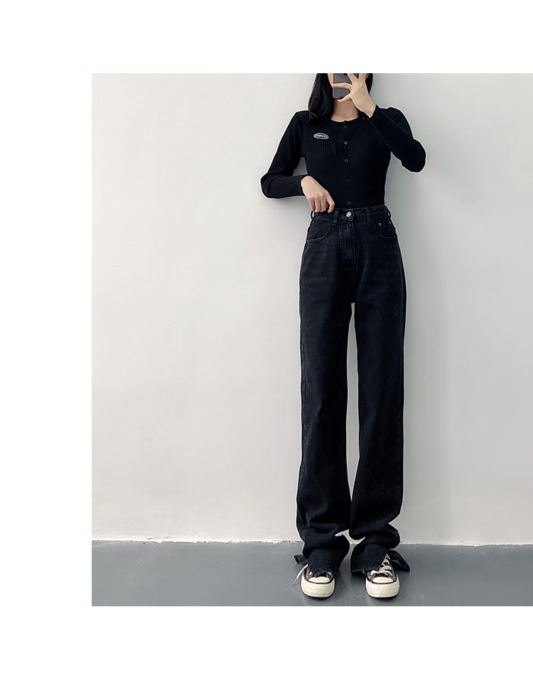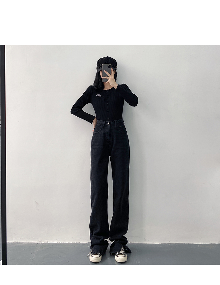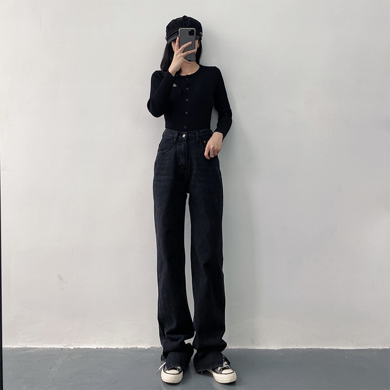 新款高腰显瘦黑色开叉宽松直筒170高个子175加长版拖地牛仔裤女