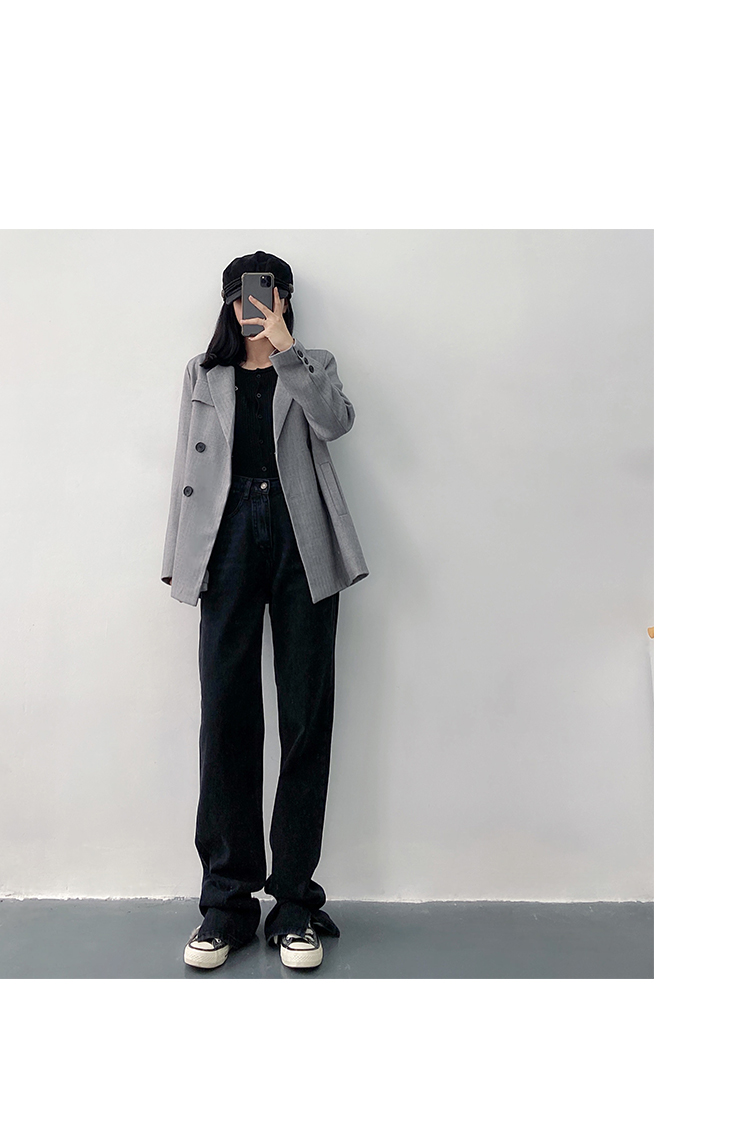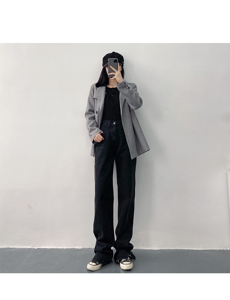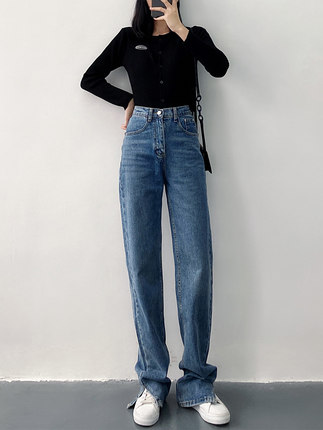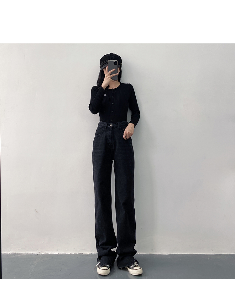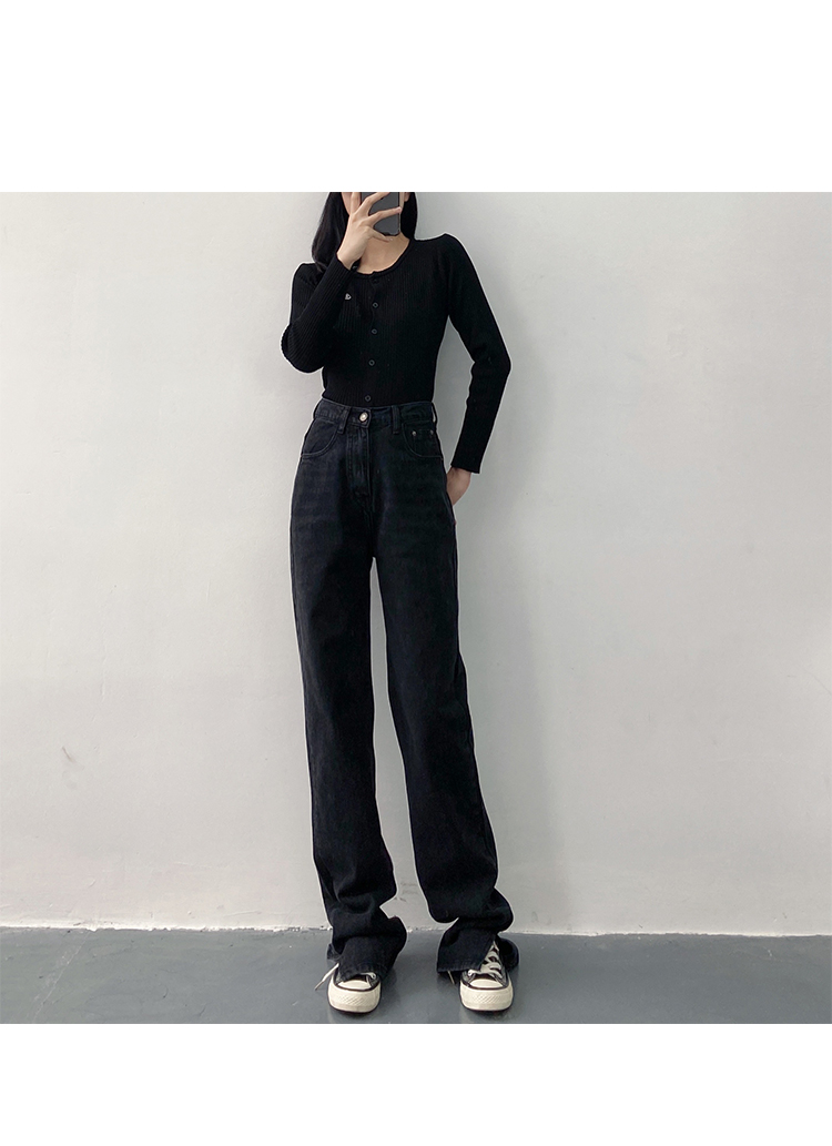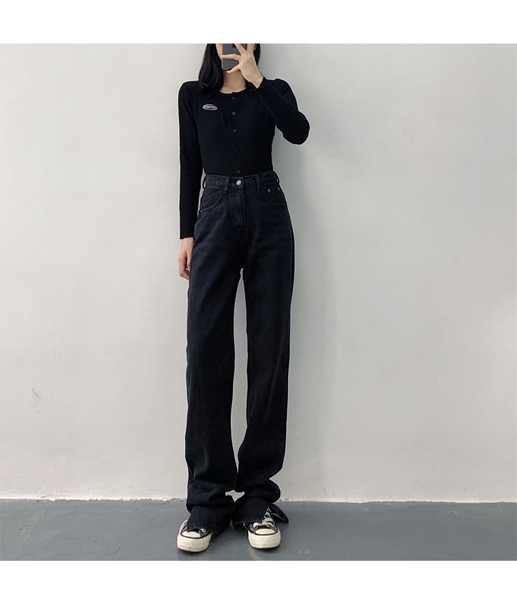 新款高腰显瘦黑色开叉宽松直筒170高个子175加长版拖地牛仔裤女