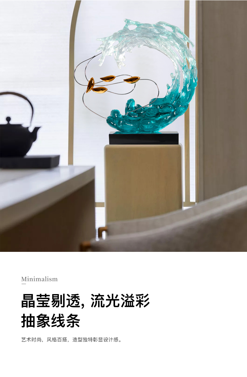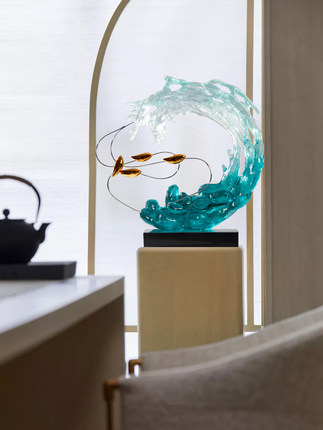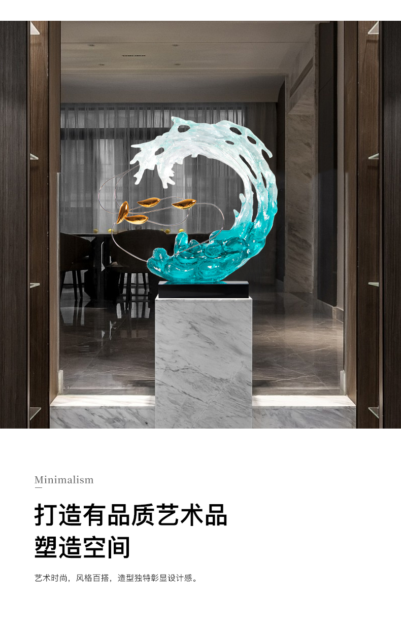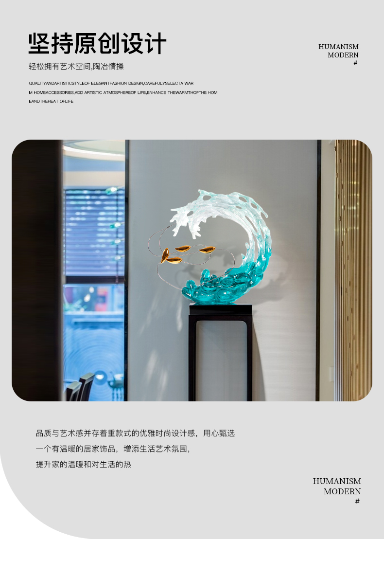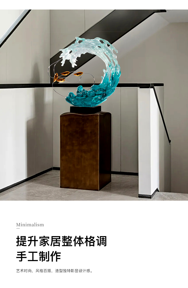 由居 现代轻奢游鱼浪花雕塑客厅玄关走廊样板房新中式艺术品摆件