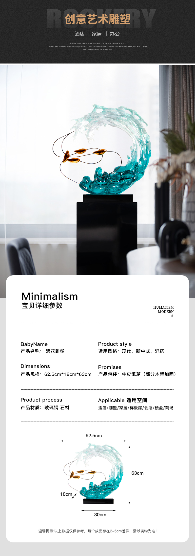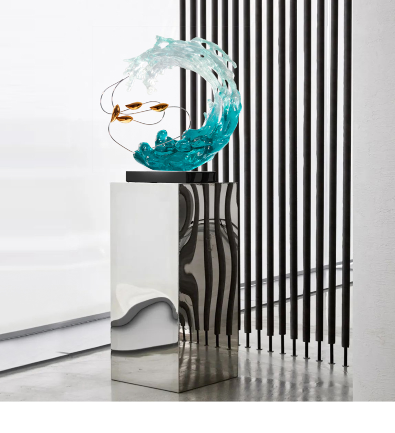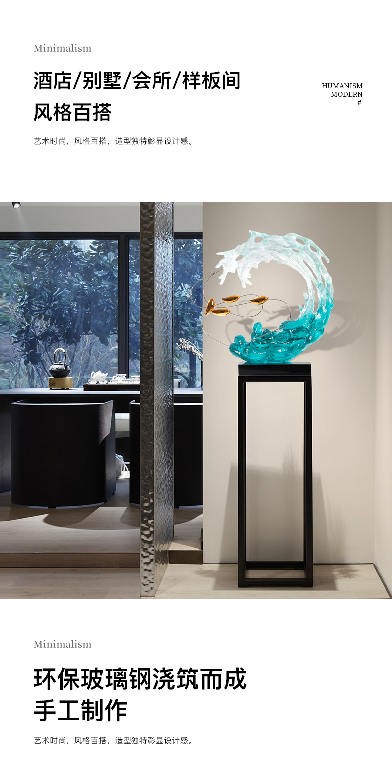 由居 现代轻奢游鱼浪花雕塑客厅玄关走廊样板房新中式艺术品摆件