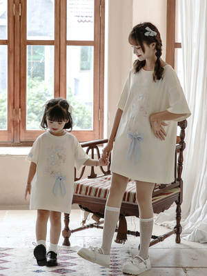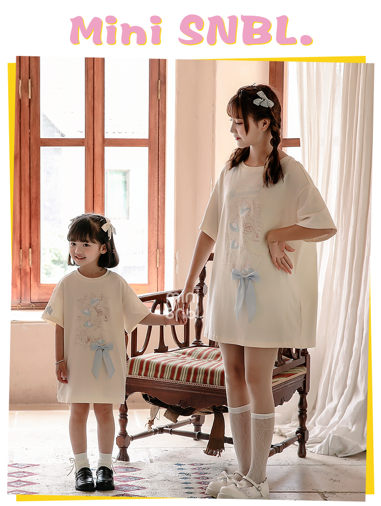爱丽丝联名minisnbl原创童装女童甜美上衣短袖中长款宽松t恤洋气